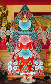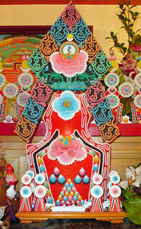 進入藏傳佛教寺院,看到壇城上擺設各種「食子」,你會立即被它美麗的外觀所吸引。五彩繽紛的配色,有的對比、有的漸層,以花瓣、火焰、摩尼寶各種圖樣裝飾,結構勻稱,精巧細緻,可說是極精彩的藝術品!