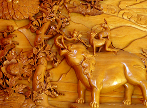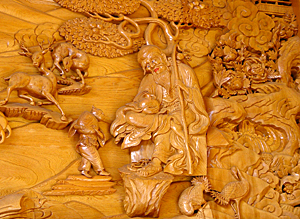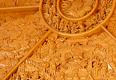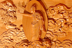 在如來殿右側的壁面上,一幅大大的木雕,六道輪迴,具體描繪十二因緣、因果與「苦、集、滅、道」四聖諦。