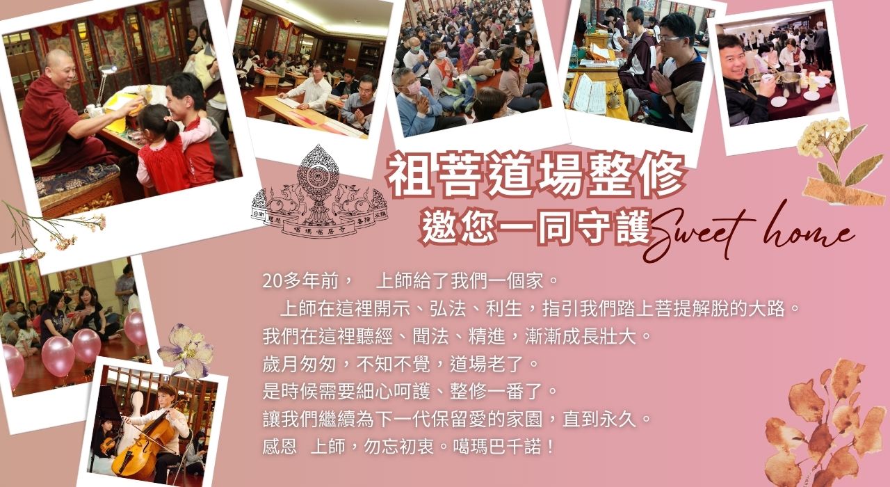 20多年前, 上師給了我們一個家。 上師在這裡開示、弘法、利生,指引我們踏上菩提解脫的大路。我們在這裡聽經、聞法、精進,漸漸成長壯大。歲月匆匆,不知不覺,道場老了。是時候需要細心呵護、整修一番了。