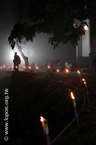 ![]() 寒夜中,火炬圍繞小神廟,猶如盞盞明燈,引我至佛前懺悔皈依。吾願效仿貧女難陀,點亮我菩提心燈,令我來世長得智慧照,滅除一切眾生垢闇。