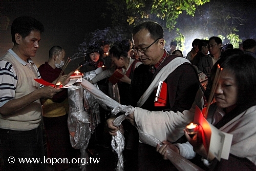 ![]() 上師帶領地方長老與十方信眾,於尊前共同唸誦供燈祈願文。