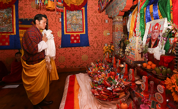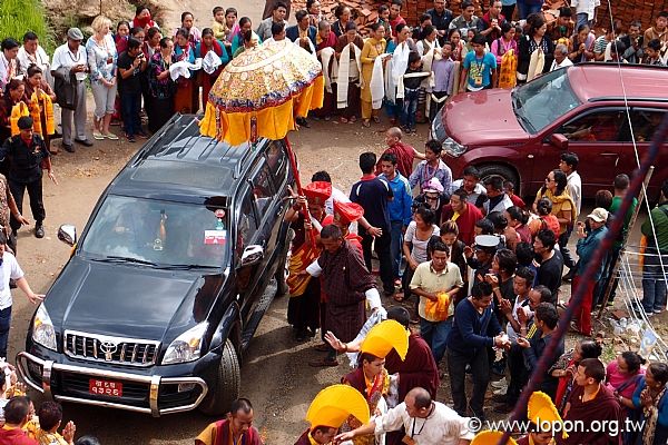 夏瑪法王聖體駐錫卡林朋佛學院法會圓滿之後,應不丹國王吉美格薩南嘉旺秋(上圖)虔誠祈請,聖體移駕尼泊爾途經不丹,7月27日駐蹕巴羅,讓信眾領受加持,接受萬民祈願。
