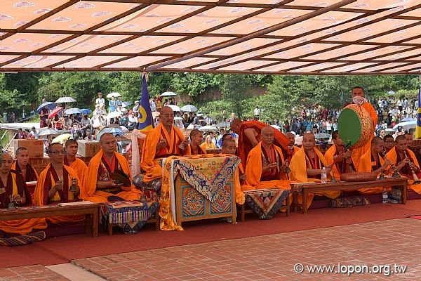 在荼毗舍利塔周圍,共有六部修法儀式同步進行: