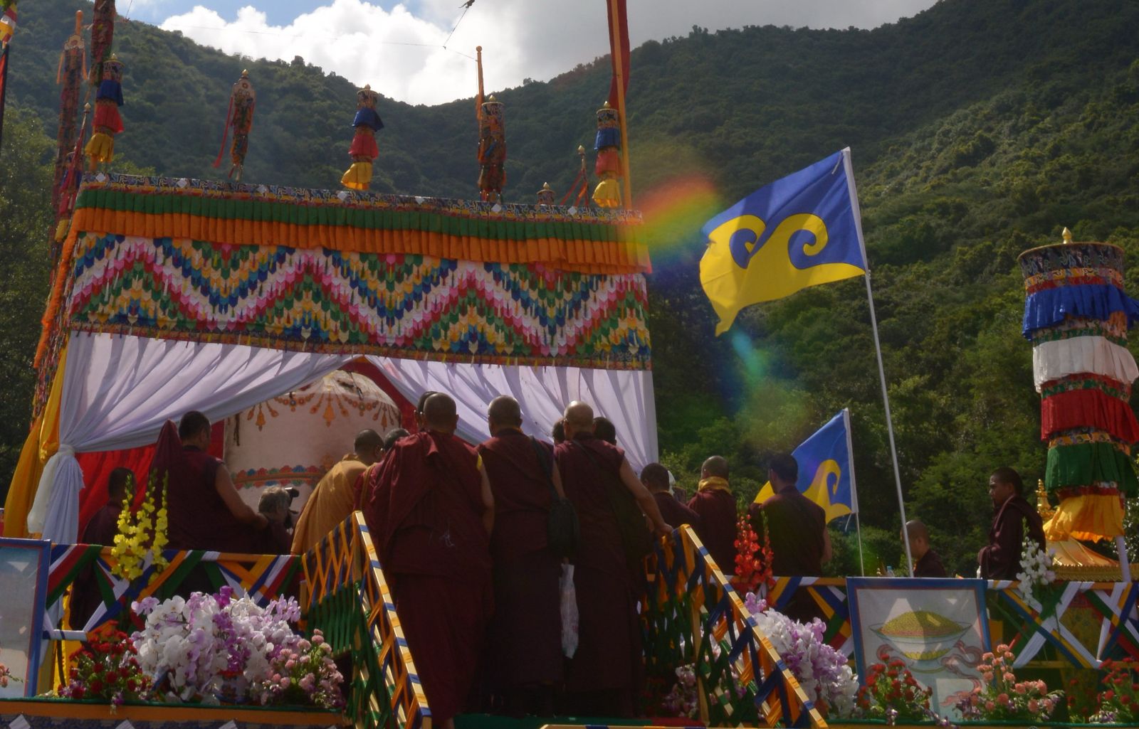 火供修法之中,出現了一道彩虹,讓各地趕赴聖典的信眾,滿溢虔敬與法喜。儀式圓滿之際,天邊再度出現另一道清晰亮麗的彩虹!