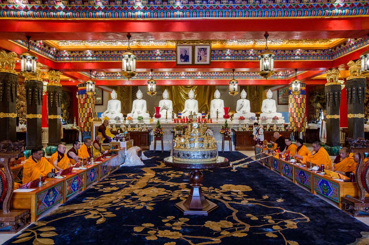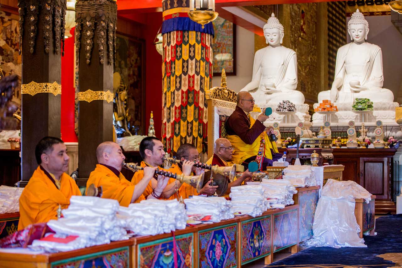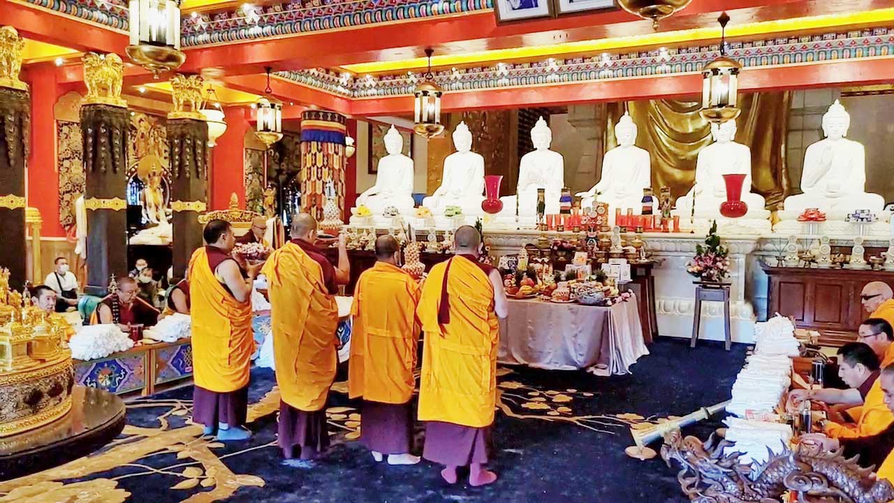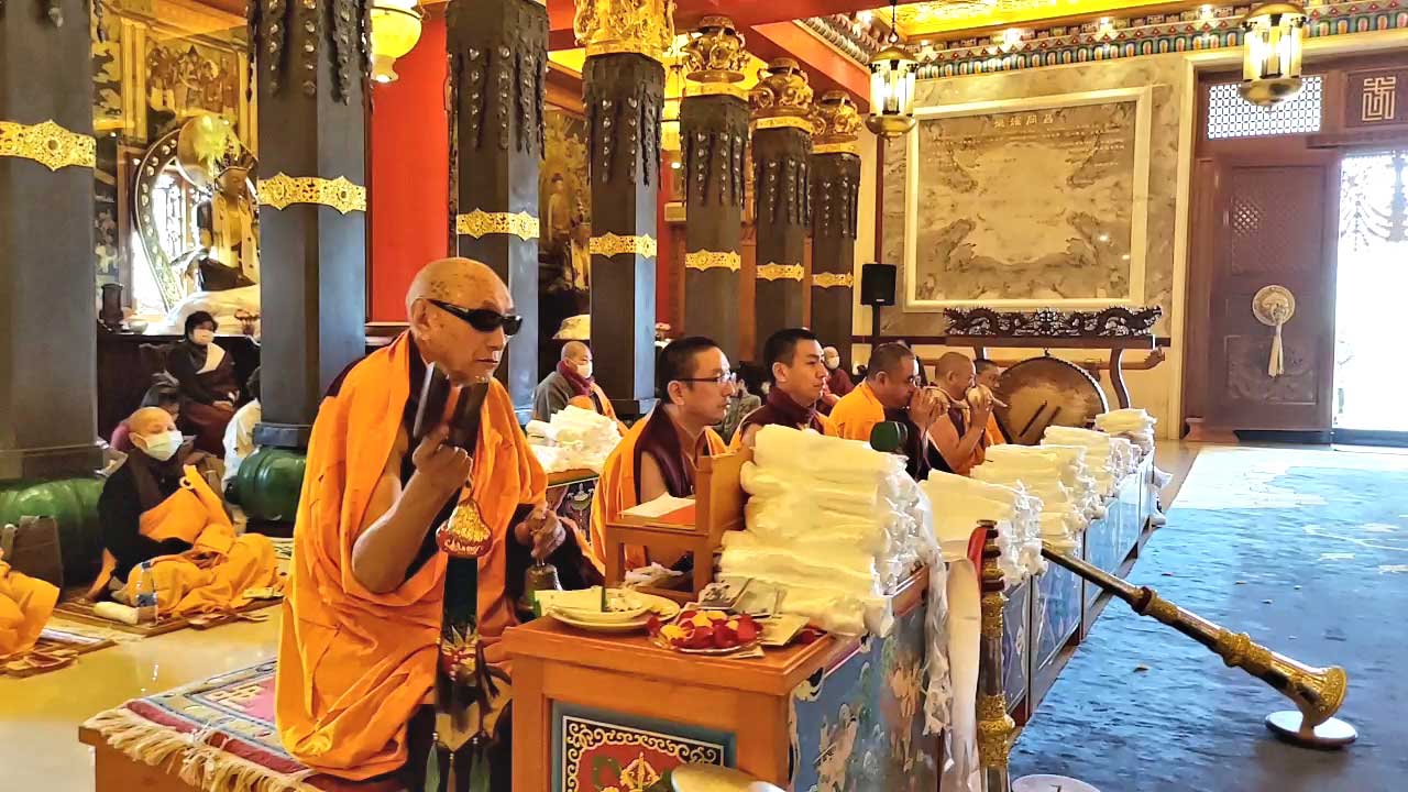 如來殿七佛前,恭請 上師仁波切主法,啟修 上師薈供,虔敬的供養根本 上師、傳承 上師、佛陀、佛法、本尊、空行勇父、僧伽眾,為眾生殷切祈禱,早日平息疫情,經濟復甦,消除災難,平安吉祥,眾生安樂。