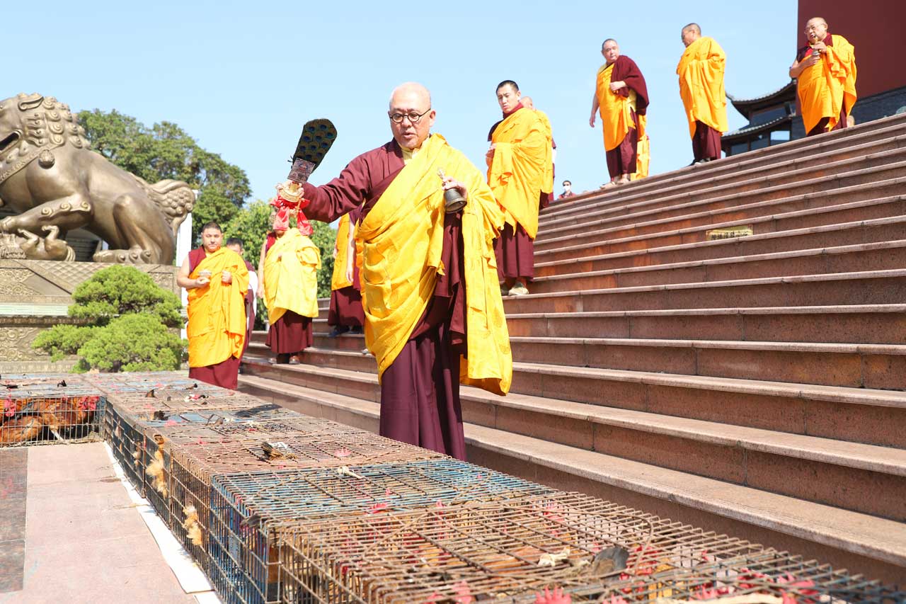上師仁波切和喇嘛慈悲為畜生修法加持,並賜以甘露水清淨,隨後將送牠們到農場安養終老。