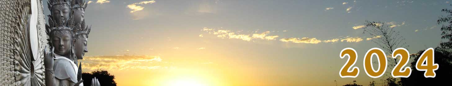 元旦為國祈福大供養法會。法筵隆重莊嚴。供養佛者無上供。入佛上智如登佛國。導以成就人民具足四無量心。慈悲喜護諸人民。捨離煩惱行善權。具福緣者親吻佛國土。聆聽妙樂心淨日月。得道佛國資糧勝須彌。壽山、桃山象徵平安長壽,國泰民安。一年之始祈願國運昌隆,在詭譎多變的明年,我們都能平安度過。盛大的供佛在無遮天空下,猶如滄海一粟,我等願心供養十方諸佛成佛之道,特別是西方極樂淨土,願我也能將這裡化為不動淨土...