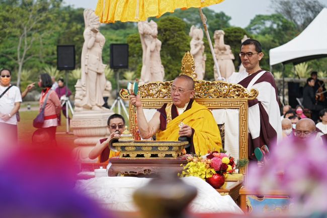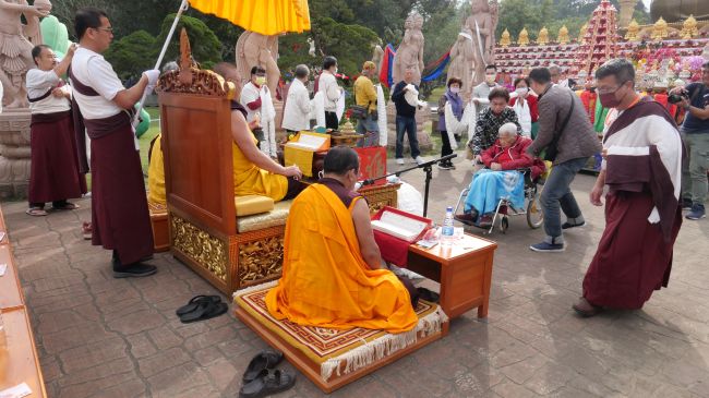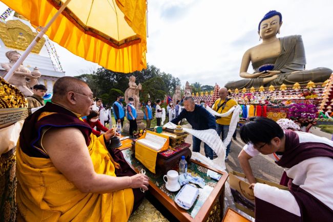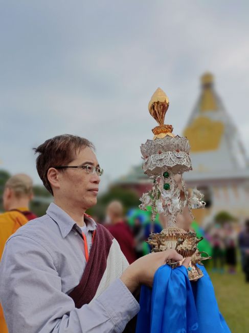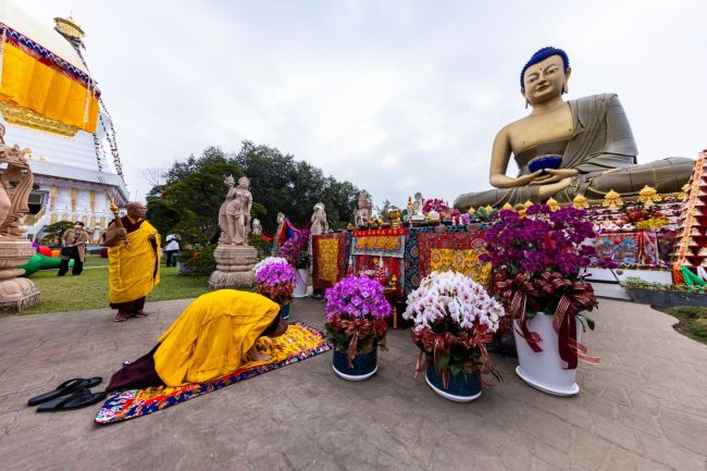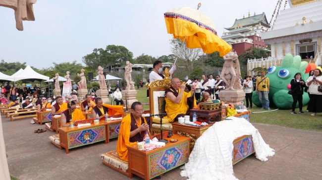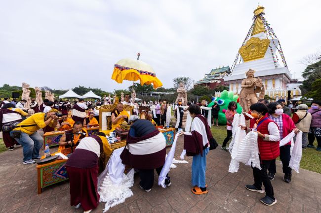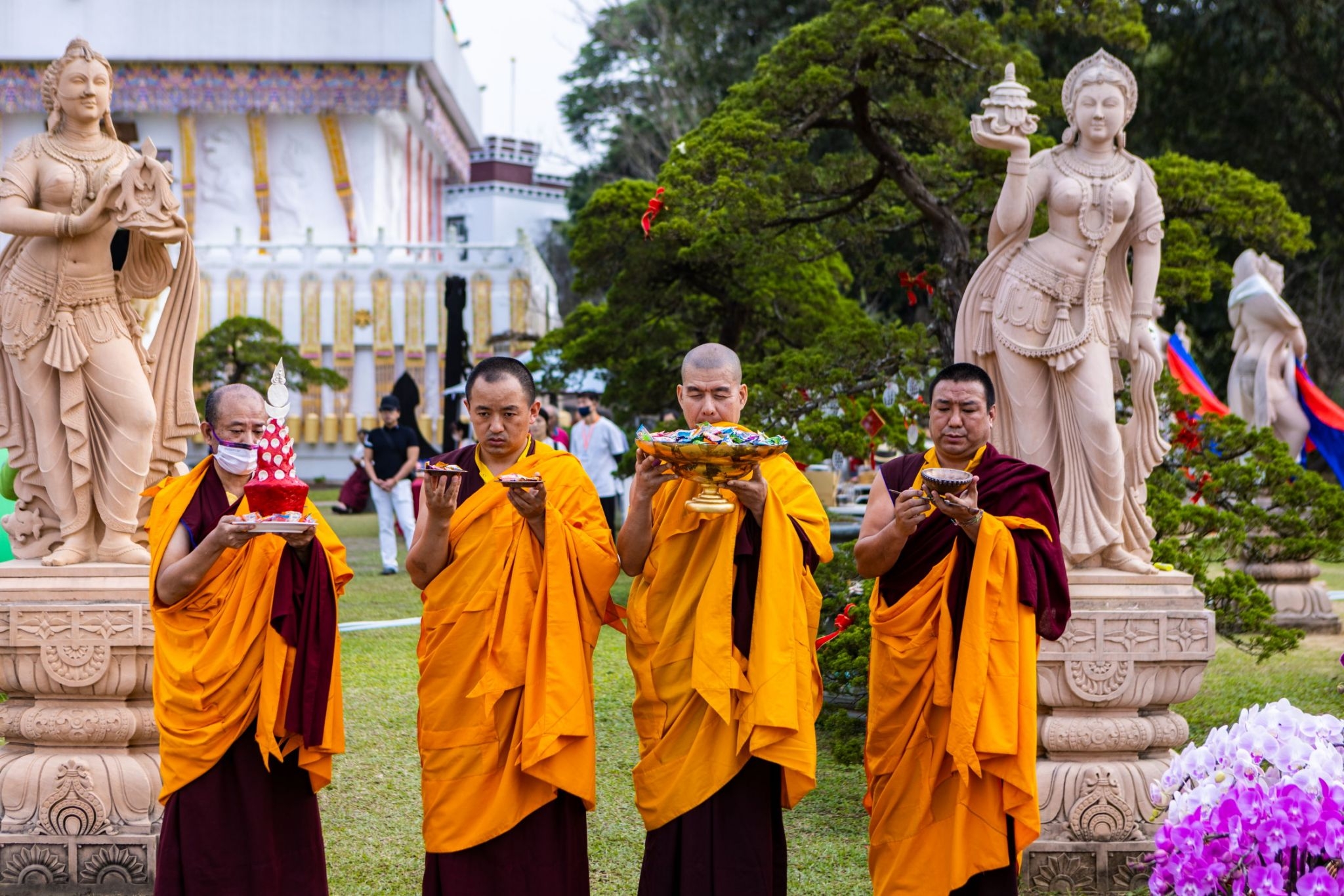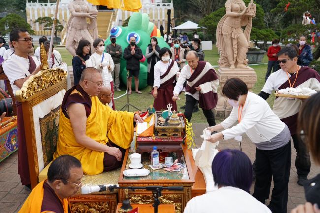 尊貴的 上師仁波切如是說:「元旦為國祈福大供養法會。法筵隆重莊嚴。供養佛者無上供。入佛上智如登佛國。導以成就人民具足四無量心。慈悲喜護諸人民。捨離煩惱行善權。具福緣者親吻佛國土。聆聽妙樂心淨日月。得道佛國資糧勝須彌。