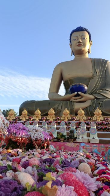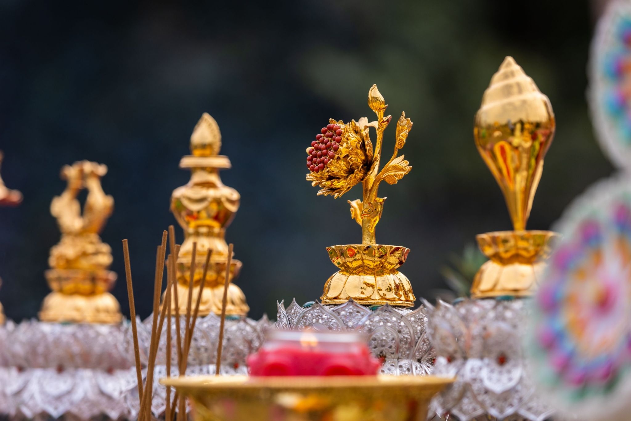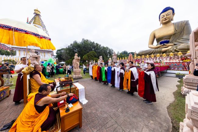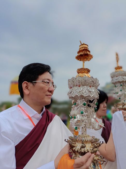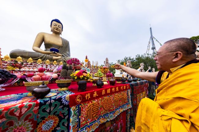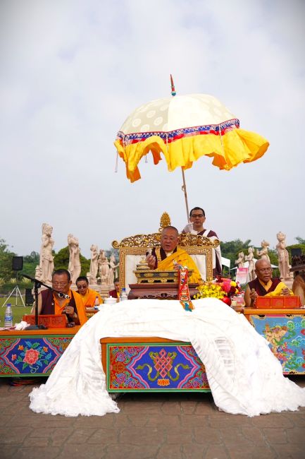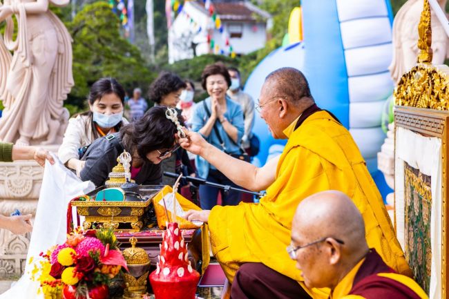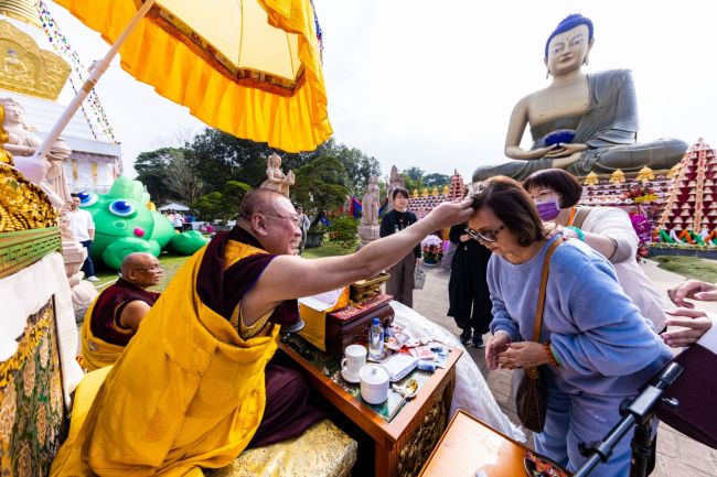 尊貴的 上師仁波切如是說:「元旦為國祈福大供養法會。法筵隆重莊嚴。供養佛者無上供。入佛上智如登佛國。導以成就人民具足四無量心。慈悲喜護諸人民。捨離煩惱行善權。具福緣者親吻佛國土。聆聽妙樂心淨日月。得道佛國資糧勝須彌。