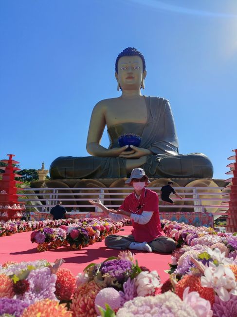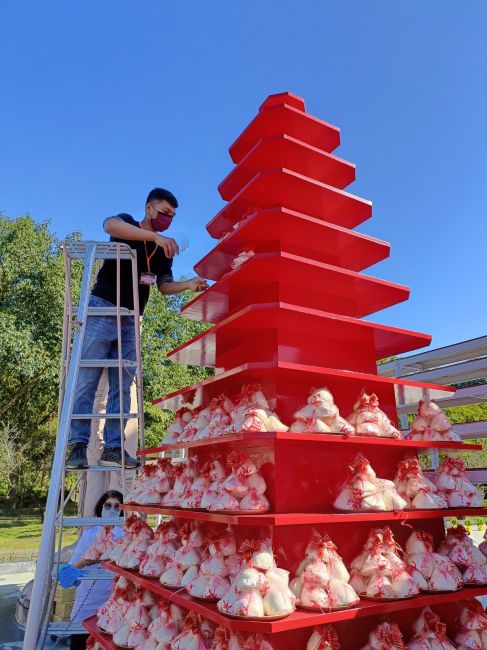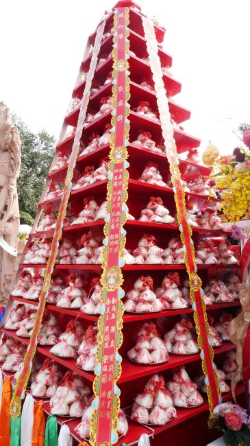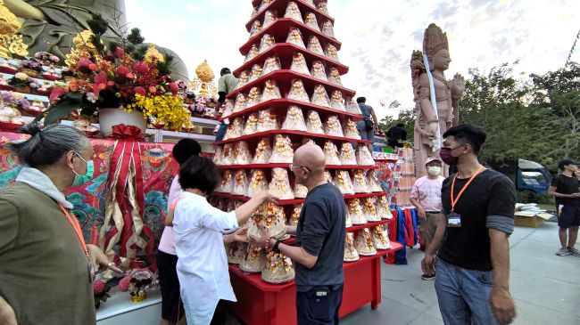 壽山、桃山象徵平安長壽,國泰民安。一年之始祈願國運昌隆,在詭譎多變的明年,我們都能平安度過。盛大的供佛在無遮天空下,猶如滄海一粟,我等願心供養十方諸佛成佛之道,特別是西方極樂淨土,願我也能將這裡化為不動淨土。讓地球上的眾生也能早日解脫享受勝義菩提。」