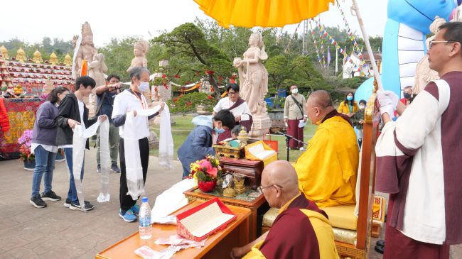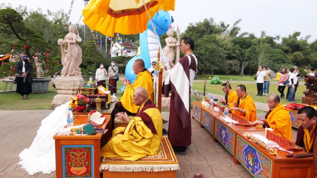 元旦大日無量壽佛晏法會由尊貴的 上師仁波切主法,帶領勘布和喇嘛們,為弟子和信眾們供佛祈福。弟子和信眾們感恩諸佛菩薩及護法的護持,祈願 上師仁波切,政躬康泰,法輪常轉,佛行事業永遠興盛。最後,法會於西樂演奏獻供妙樂聲中圓滿及功德迴向。尊貴的 上師仁波切帶領勘布和喇嘛們,將所有功德廻向疫情平息、民生樂利、兩岸和平、永無戰事!