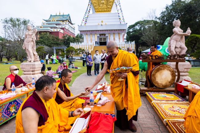 上師仁波切主法無比達波噶居上師薈供,祈禱疫情早日平息,經濟復甦,消除災難,平安吉祥。依此供養三寶三根本,能平息修行之違緣,消除疾病及魔障等,令壽元福德增長,兩岸和平、眾生安樂。