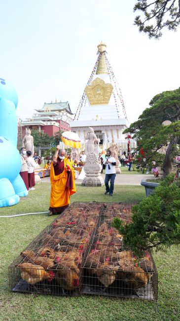 上師仁波切如是說:「體弱多病或身染惡疾者,放生是消除惡業最速方便。健康者放生,則是增長慈悲心的功德事業。」放生之雞隻將於農場養護照料,直至終老。