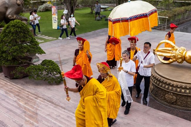上師仁波切主法測揚財神寶瓶法會圓滿,弟子及信眾迎接寶瓶,並領受福祿壽加持。 上師仁波切如是說,「測揚財神寶瓶法會修的測揚法很特別,它是財富、長壽一起修。這是特殊的儀軌。」迎接寶瓶及領受福祿壽加持,是為了慈悲利他,增長菩提心,廣行布施波羅蜜。依仗 上師三寶及財神加持我們,福德資糧豐盛圓滿,可以幫助更多眾生! 上師仁波切最後為蒼生祈禱,為這片土地祈禱,為這個懸浮的國家祈禱!佛祐中華民國。