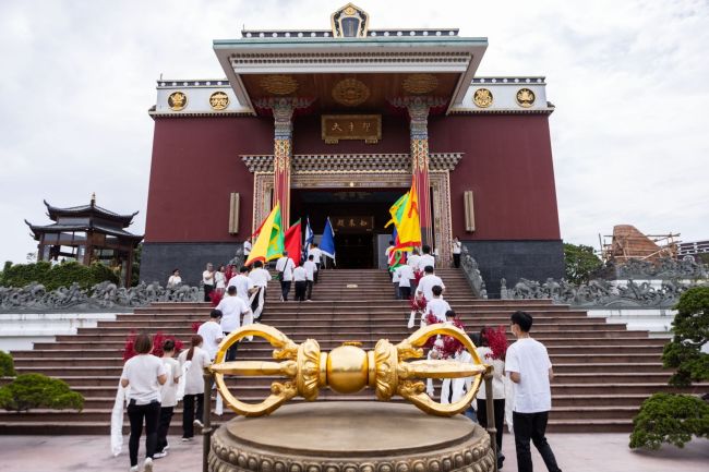 噶瑪噶居寺於5月19盛大慶祝佛誕浴佛。悠揚的甲鈴聲響徹天際,迎風飄揚的五色旗,顯得無比莊嚴隆重。尊貴的赤巴 第三世洛本天津仁波切帶領喇嘛、弟子及信眾,恭敬迎請釋迦摩尼佛黃金初生像,前往如來殿舉行莊嚴隆重的佛誕浴佛,向佛陀致上最高無上的禮敬與神饈妙樂。