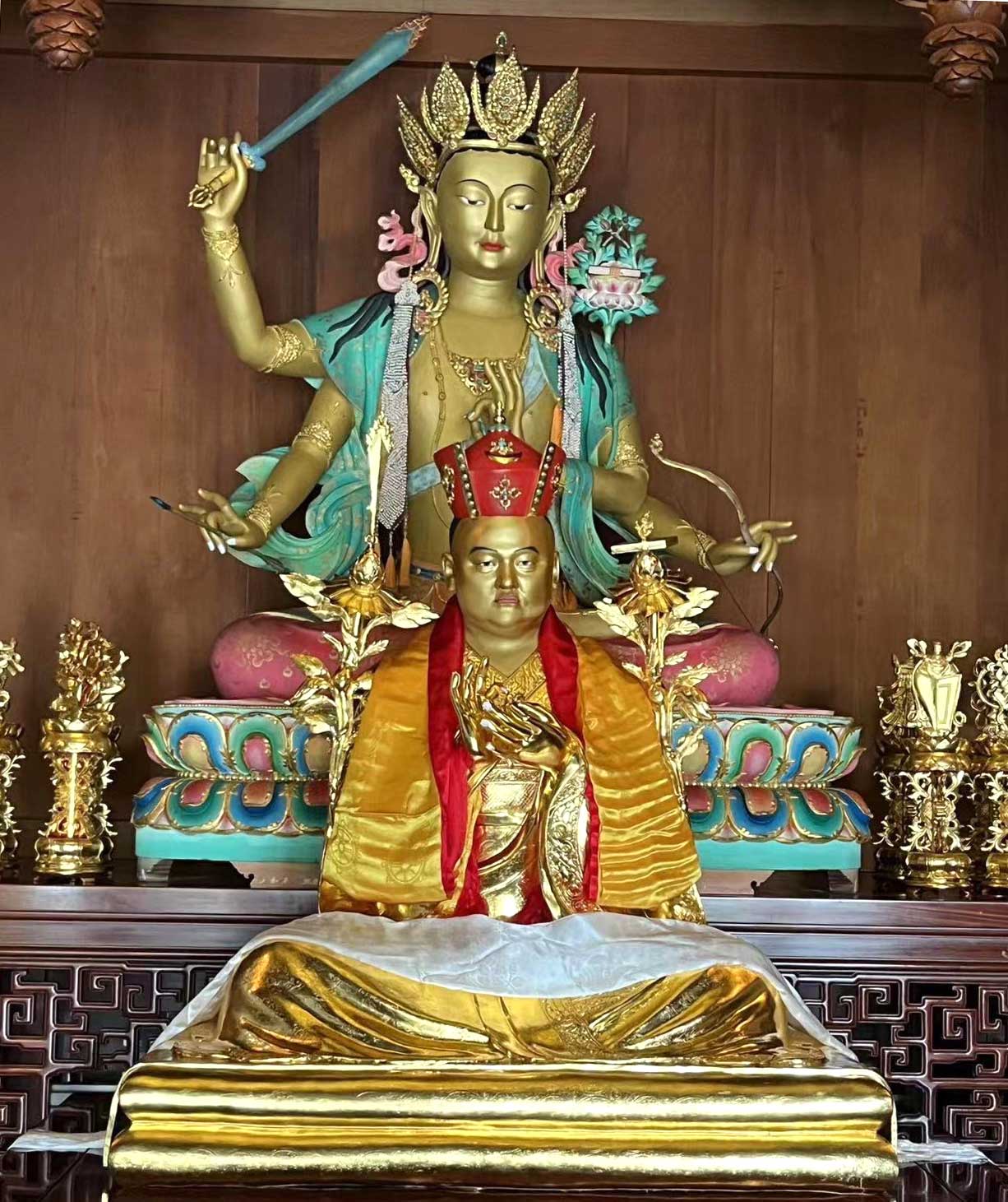 十年光陰,倏忽而過,但源自內心的真誠和發於骨髓深處的恭敬,未曾稍歇。在聖者第十四世夏瑪巴法王涅槃屆滿十週年之際,文殊院一樓安奉法王聖像。我們日日夜夜祈求夏瑪巴仁波切的轉世降臨;傳神的紅寶冠法王聖像,匯聚著四方佛子望眼欲穿的殷殷祈請----珍貴有如黃金,源自無上空性的噶瑪岡倉大手印實修傳承寶鬘,雋永,深刻而美麗,無與倫比!