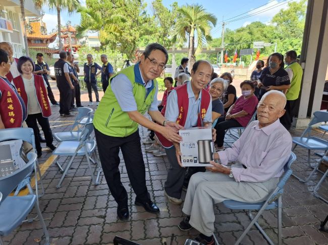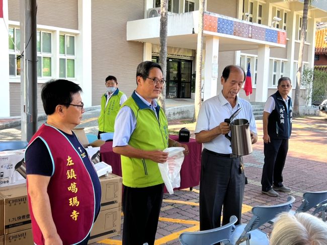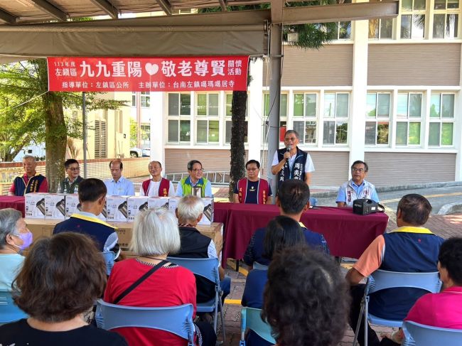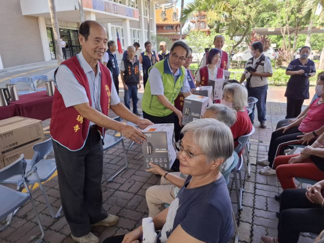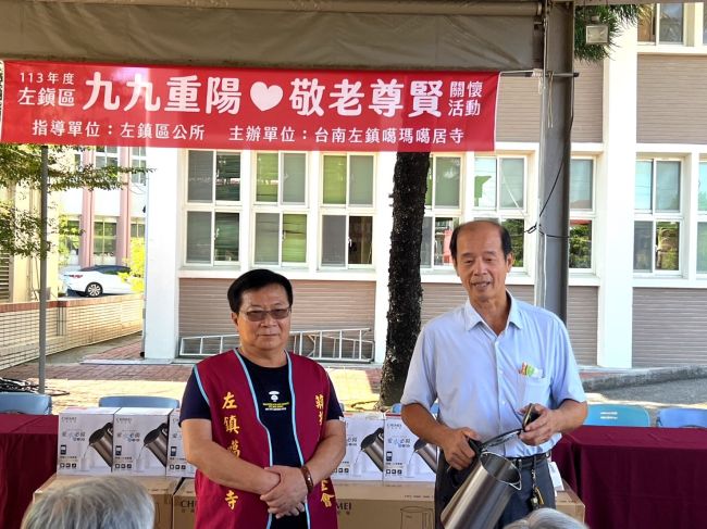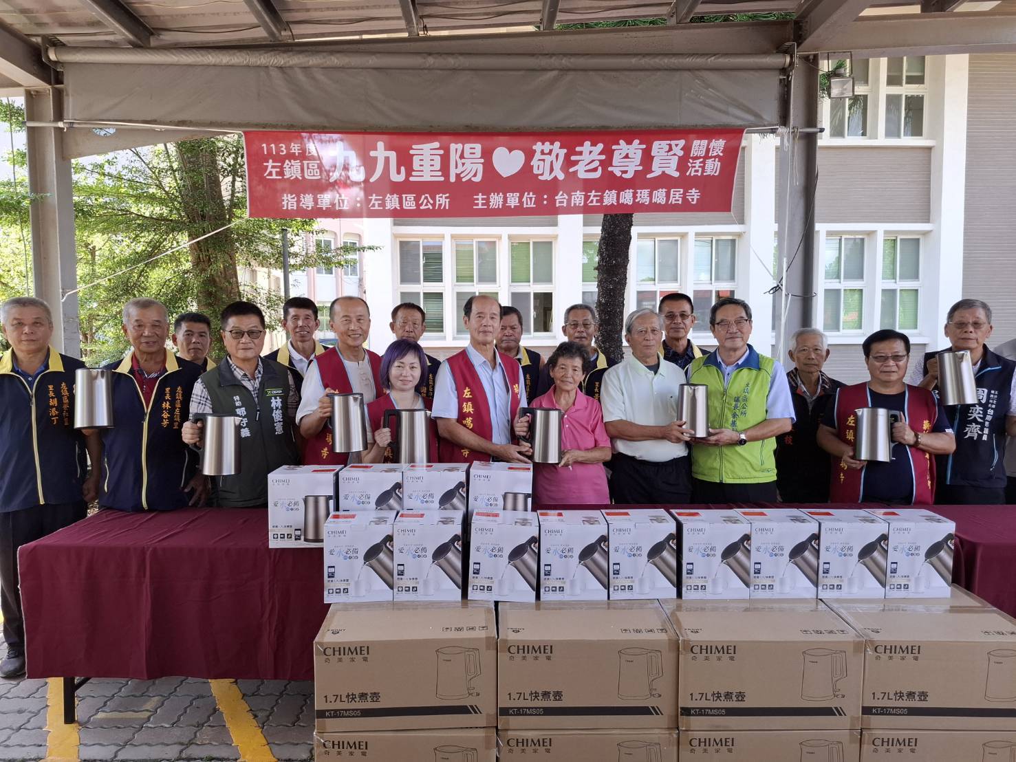 10月8日上午噶居寺攜手左鎮區公所,於重陽節前夕傳遞上師 仁波切對當地長者的深切關懷與祝福,以三壇法會結餘款,為左鎮區1364位65歲以上的長者購置了優質的實用小家電——快煮壺。