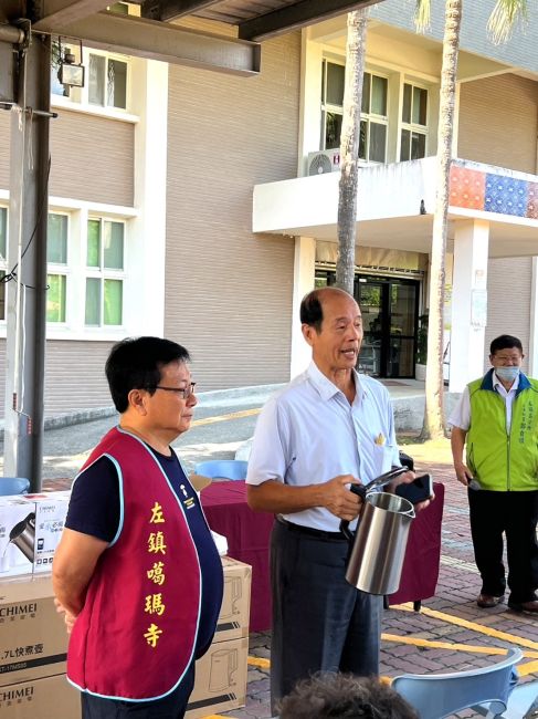 由於左鎮區年長比率高,部分獨自居住,生活起居自理,平日多以瓦斯爐燒開水,此次特購置不鏽鋼大容量的快煮壺小家電送給左鎮區長者,有過熱保護、預防乾燒、自動斷電等功能,不怕老人家忘記釀災,讓生活更便利也更安全!