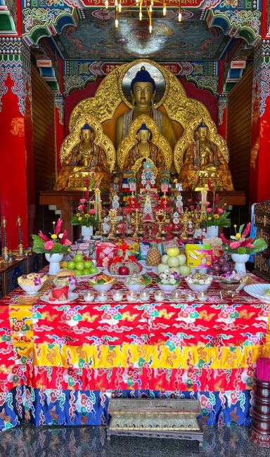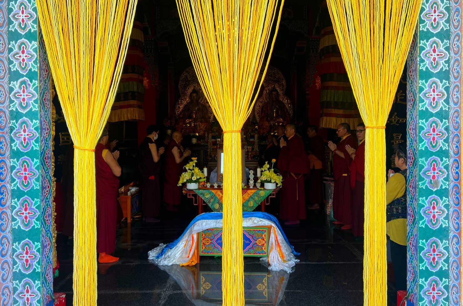 儀式由 上師洛本天津仁波切親自主持。曦光初照,堪布與喇嘛們親侍於側,恭敬為長老更衣大殮。誦經之聲綿延不絕,梵音清越,縈繞空中;堅定溫柔的法音,訴說著對長老崇高法德的讚仰與深恩的緬懷。