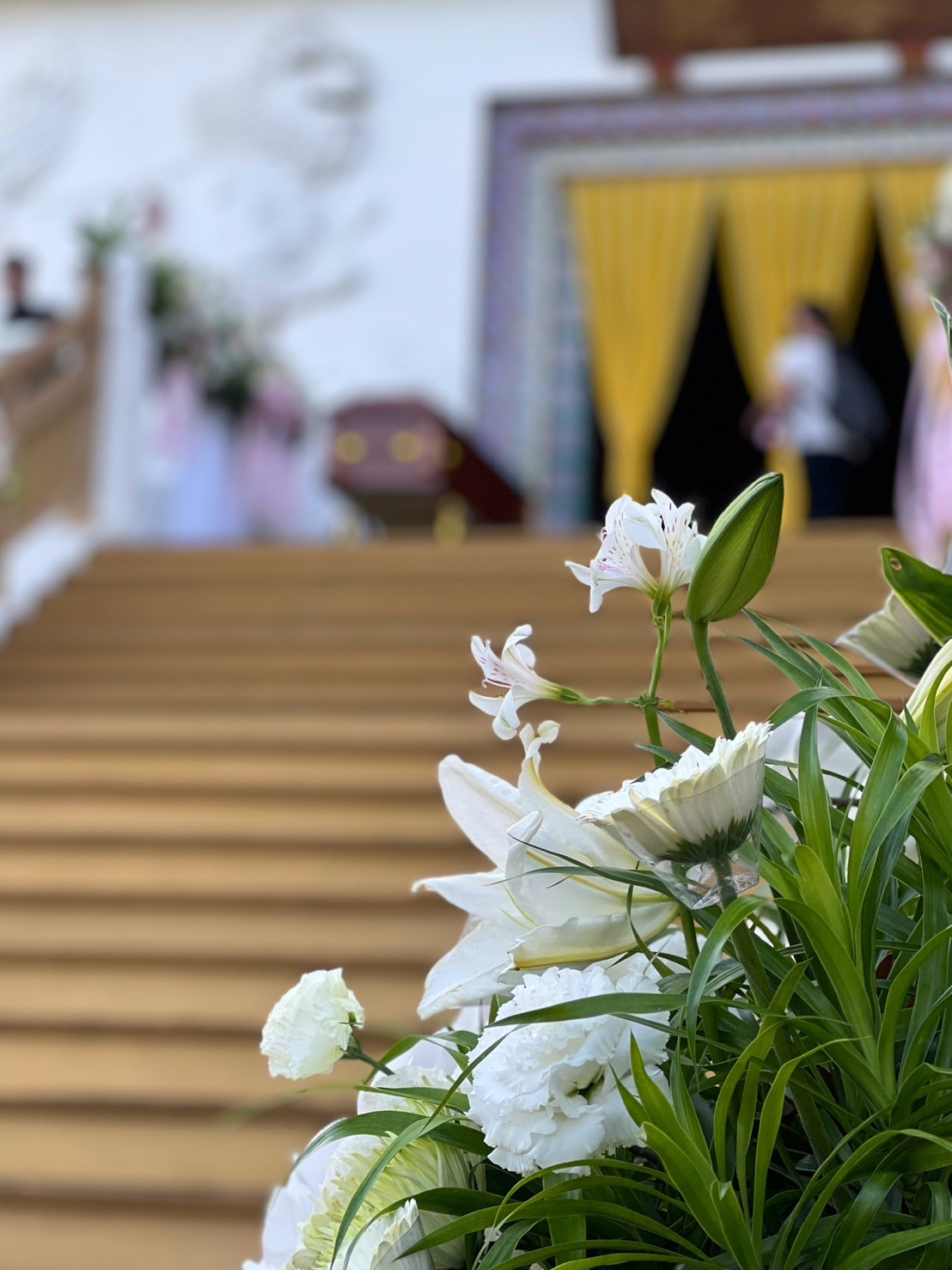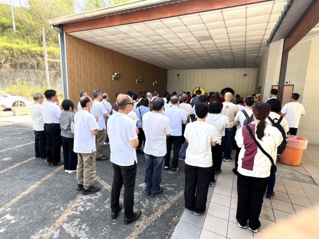 靈車駛至火化場,日色已昇,霞光映照山林,天地寂然如洗。風中,唯餘修法之聲與清香裊裊,將長老此生圓滿的事蹟,融入本來的寂靜中...
