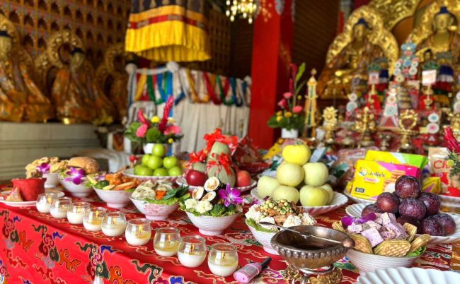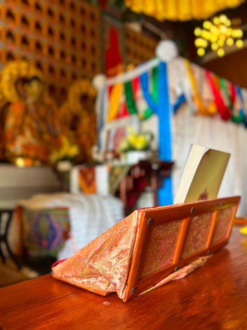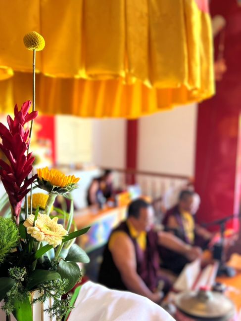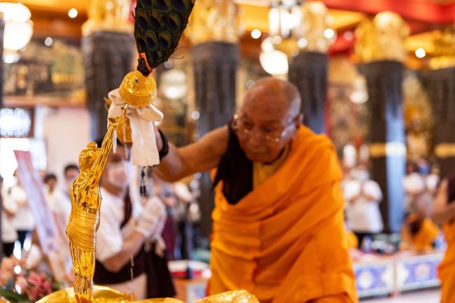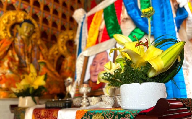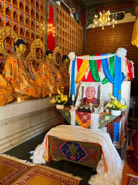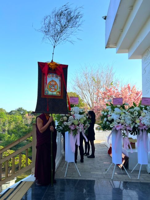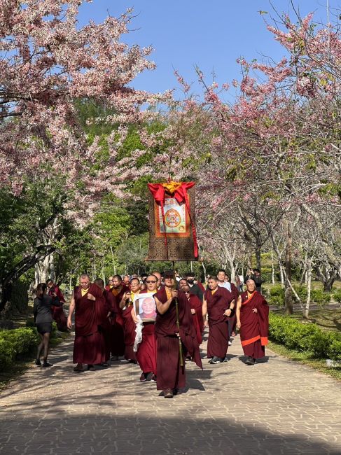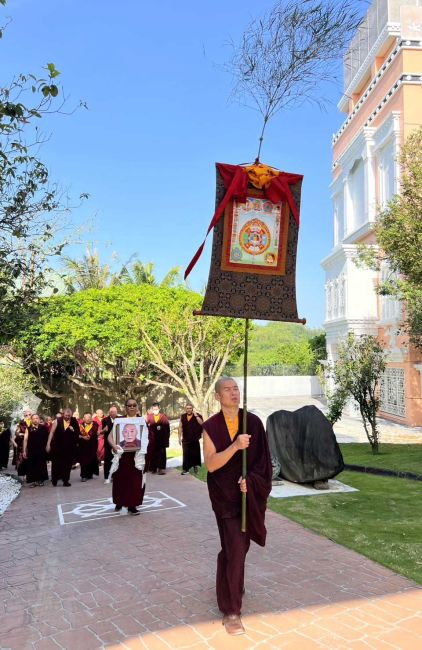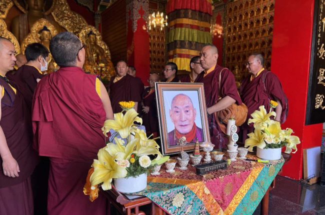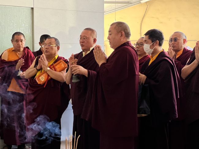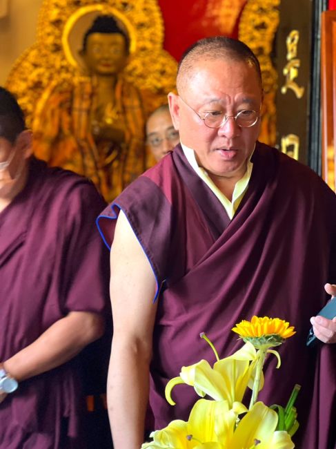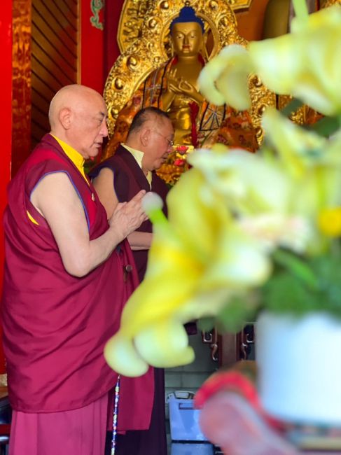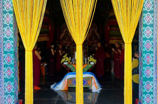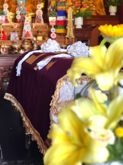 上師仁波切協助長老設靈於本寺舍利塔。每日,噶瑪噶居的上師仁波切親自帶領堪布與喇嘛們於靈前修法,藉由觀修之力,清淨長老受生淨土的障礙,令善緣增上之際,蓮花化生,淨識見佛。