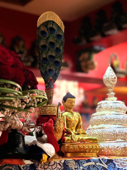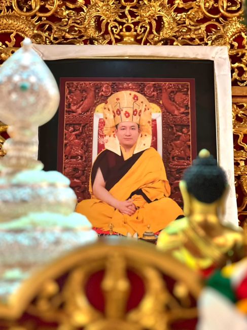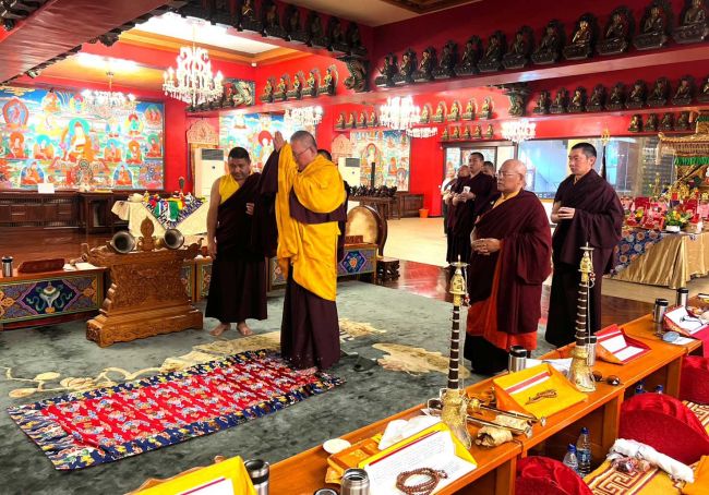 2025年5月6日[藏曆2152年,木蛇年三月(具香月)初九]值此尊勝大寶法王壽辰吉祥日,仁波切率領堪布與喇嘛上座於本日上午九時,恭修長壽佛成就法,至誠獻上身、語、意三寶曼達。僧俗四眾弟子同心敬獻哈達,祈願尊貴的第十七世噶瑪巴法王法體安康、壽量增長、長久住世、弘法利生事業自然任運、無礙廣展。
