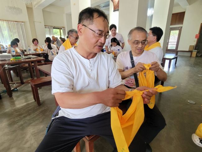 這場培訓,不僅增進了志工間的情誼與默契,更強化了整體安全應對能力。一條三角巾,連結的是學習與實踐的承諾;一次相聚,鋪陳的是共同守護的力量。透過志工的凝聚與用心,讓寺院成為一個更安全、更有愛的地方。