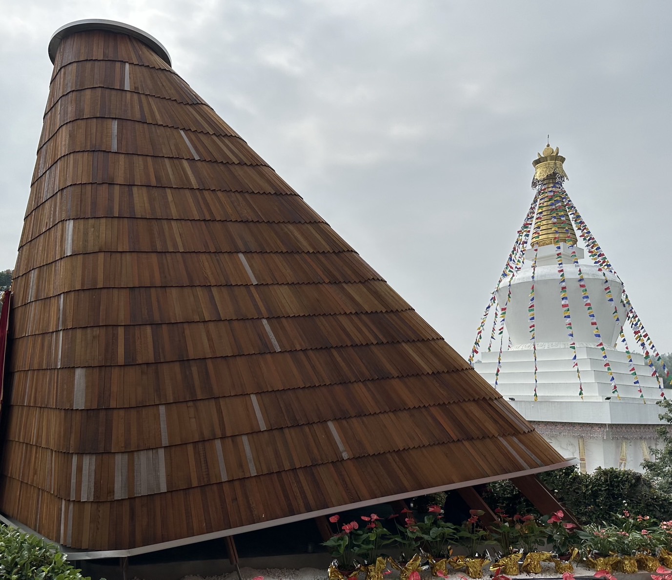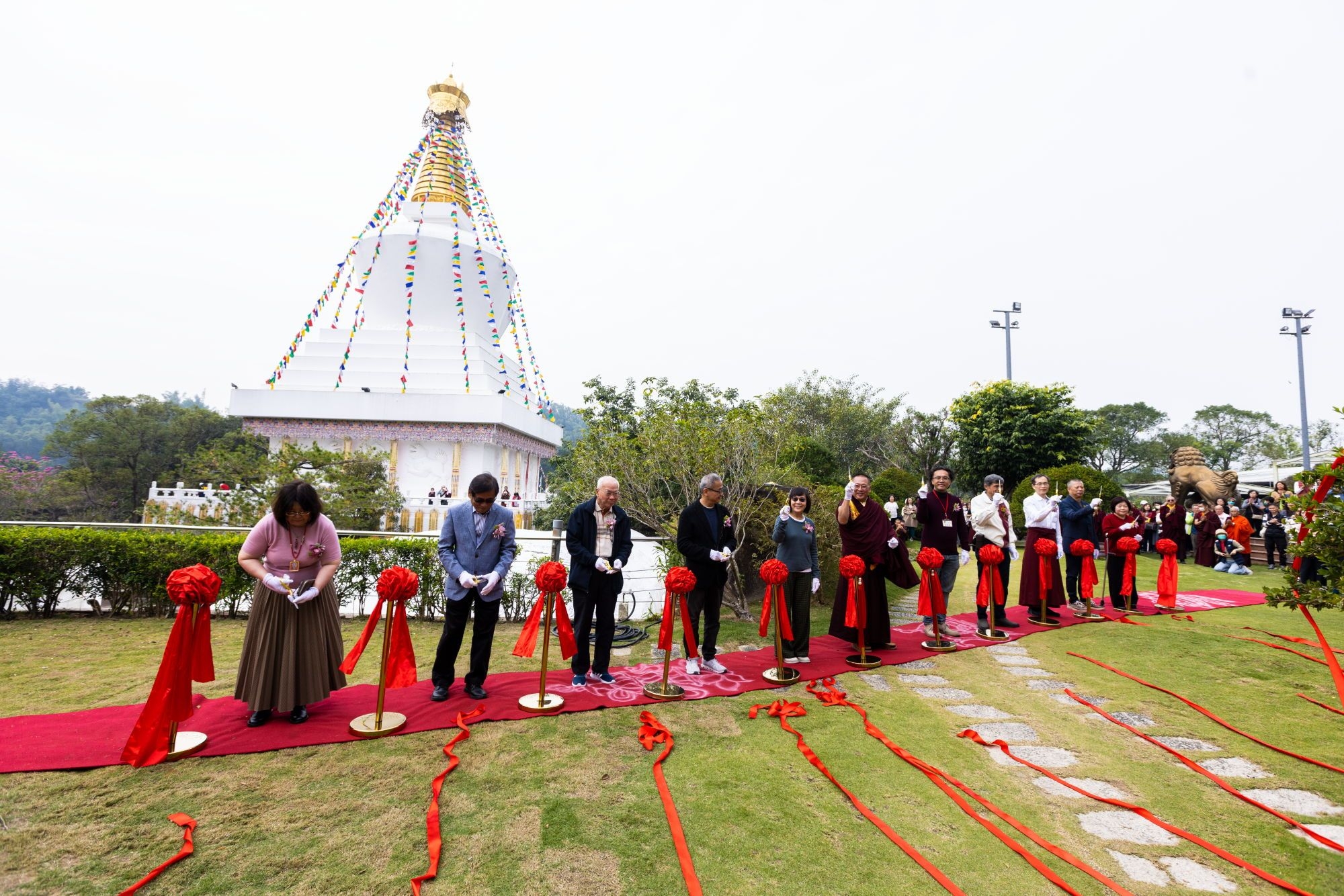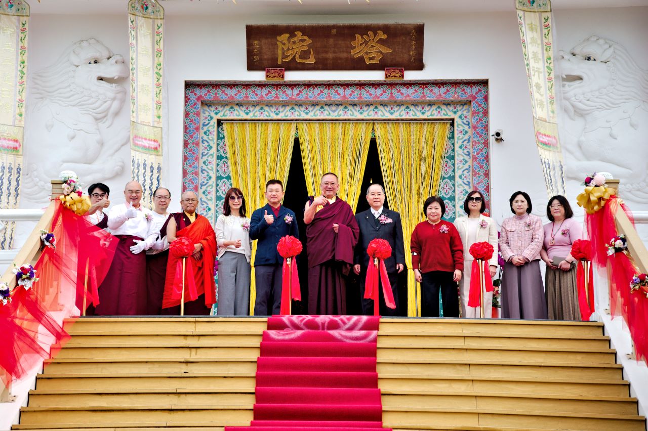 舍利塔的階梯上, 上師居中,左右兩側是守護大白塔的噶居家人代表。五百多位金剛昆仲發心,圓滿舍利塔二次裝臟;白淨的「見即解脫吉祥光塔」成為圓滿四部瑜珈:事部、行部、瑜珈部、無上瑜珈部的珍貴壇城。聖像、大藏經、石雕壇城、琉璃塔千座;十一尺中脈經文環繞雕刻,莊嚴裝臟。望向「塔院」二字, 上師帶領著貴賓代表剪下紅綵,三十餘年的光陰自眼前快速旋過:曾在塔下撫過轆轆作響的經輪、曾在塔內向釋迦牟尼佛學樣對坐、曾在夜色中返家前回望――塔上的日輪月輪在月光中多麼溫柔、五色旗翻飛……大白塔始終是皚皚含光。如今,它已是圓滿的淨土,佛的聖殿;天地間最珍貴的存在,噶居家族的無上榮光!