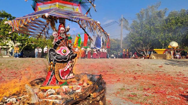 一連九天的瑪哈噶拉修法,從清晨到傍晚,無有間斷。最後一天(除夕日)是重頭戲--除障多瑪大火供,此乃大黑尊者以極秘密威德,清淨確保來年平安吉祥。眾人以威嚴華麗的巨陣儀仗,恭送瑪哈噶拉除障多瑪至和平廣場後,金剛上師召請瑪哈噶拉大護法,以火焰之口,吞噬善男信女們的惡業,消除一切無明、病毒、詛咒、邪靈、債主……等等逆境障礙。火供時,五彩旗幟凜凜飄揚於山風中,喇嘛們吹奏起雄渾磅礡的法樂,天地籠罩在瑪哈噶拉的威猛氣勢中。撼動人心的過程,與會的人說:「只有親自體驗過,才能明白屬於自己的感動。」