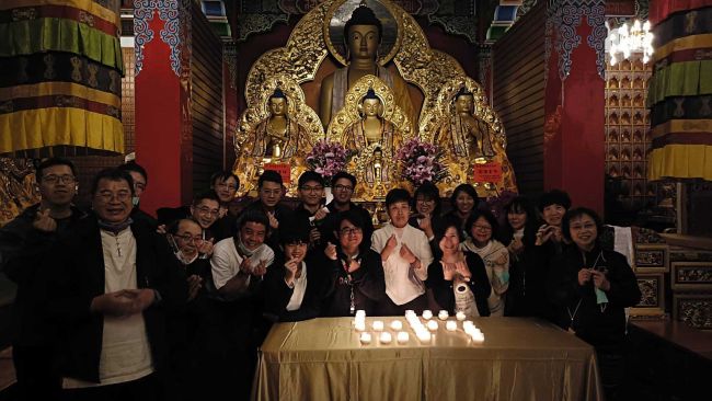 獻上湯圓,任務還沒圓滿呢。片刻之後,原班人馬再次出動,在文殊菩薩前迴向功德、年初點一盞明燈供佛,接著撤收湯圓、洗高足碗、擦乾、裝箱、入庫存放。至此,供養湯圓才算是圓滿了。志工師兄揉著惺忪的睡眼,打著哈欠,互道一聲新年快樂!疲憊的身軀,反襯著清朗寧靜的星空與柔和滿足的心--明日來寺的遊客們有福享用了。
