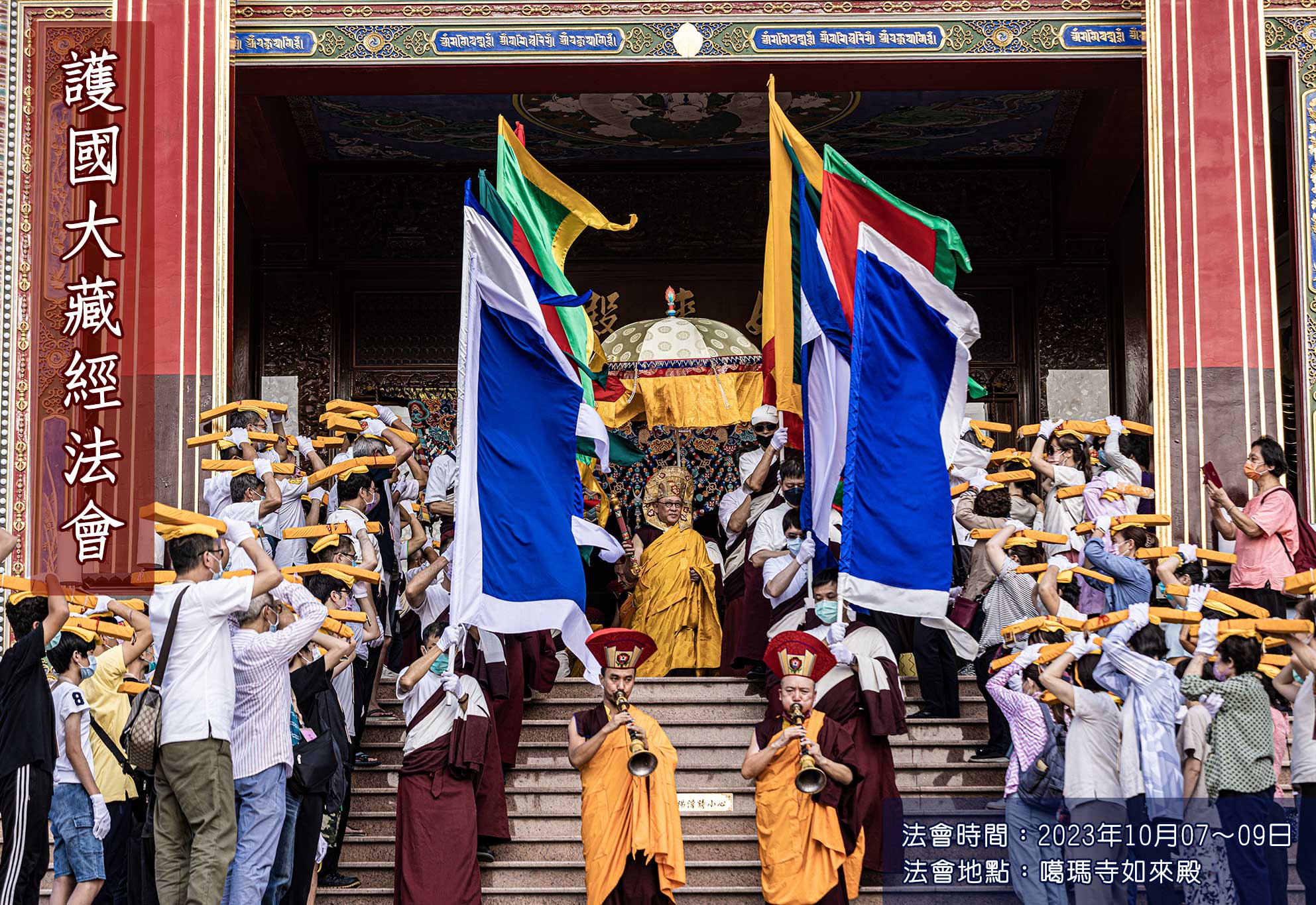 法王噶瑪巴泰耶多傑慈諭:「噶瑪噶居寺當舉行恭誦大藏經法會,為台灣、為全世界祈福。」宛如佛涅槃後之三藏結集,佛法僧三寶一時圓滿具足,神聖無比。祈願恭誦大藏經,三寶三根本加持,佛佑台灣、國泰民安、風調雨順、兩岸和平。祈願平息刀兵劫、饑饉劫,以及疫病劫。全球疫情早日平息,民生恢復繁榮,眾生離苦得樂,速證菩提!