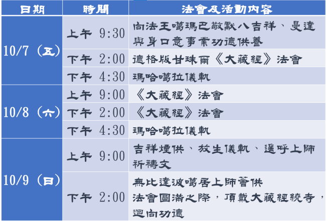 - 法會時間表若有修訂,請依本寺官網最新公告為準。防疫相關措施,依據政府頒佈指引執行,請大家配合。