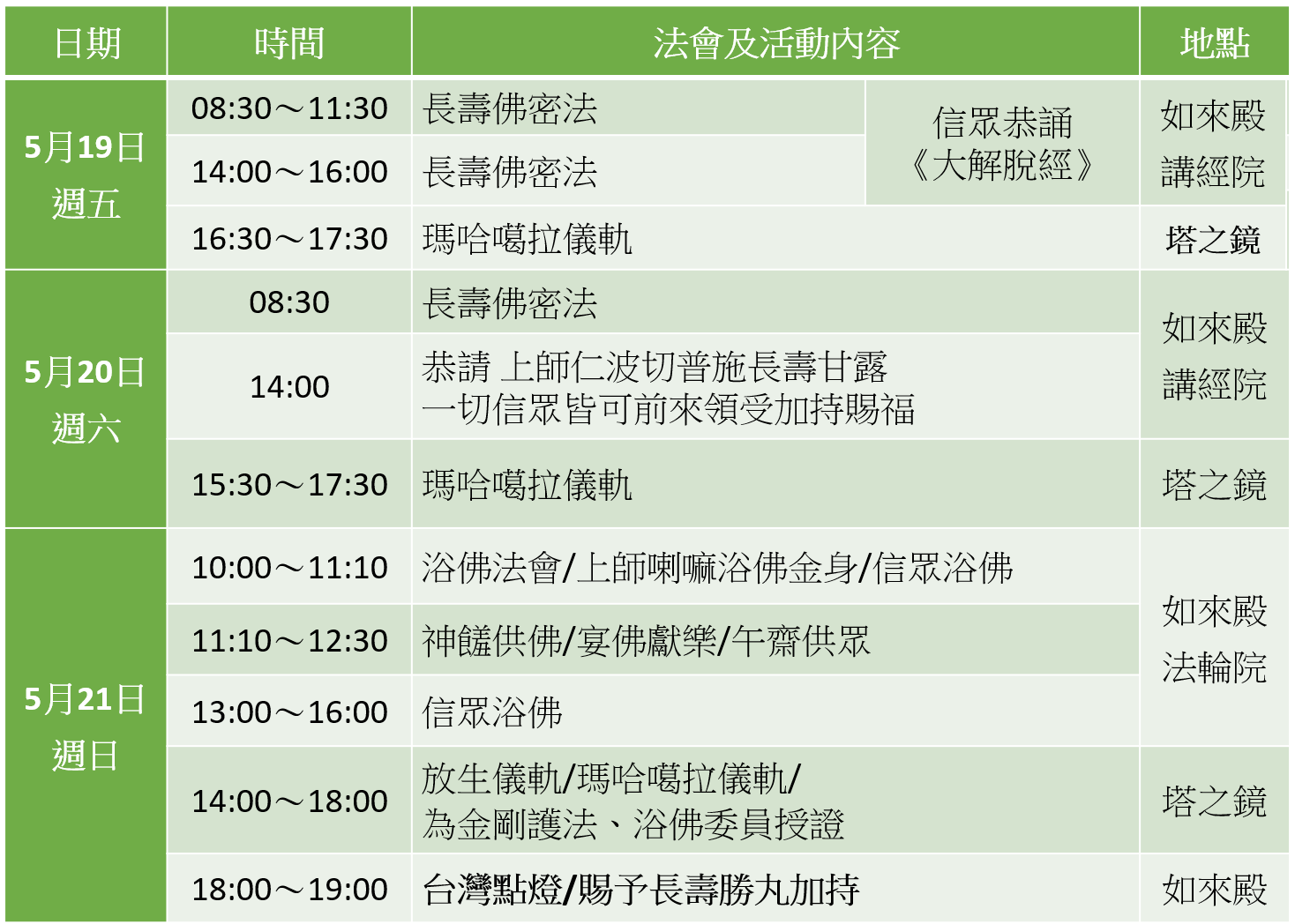 註:法會時間表若有修訂,請以本寺官網最新公告為準。