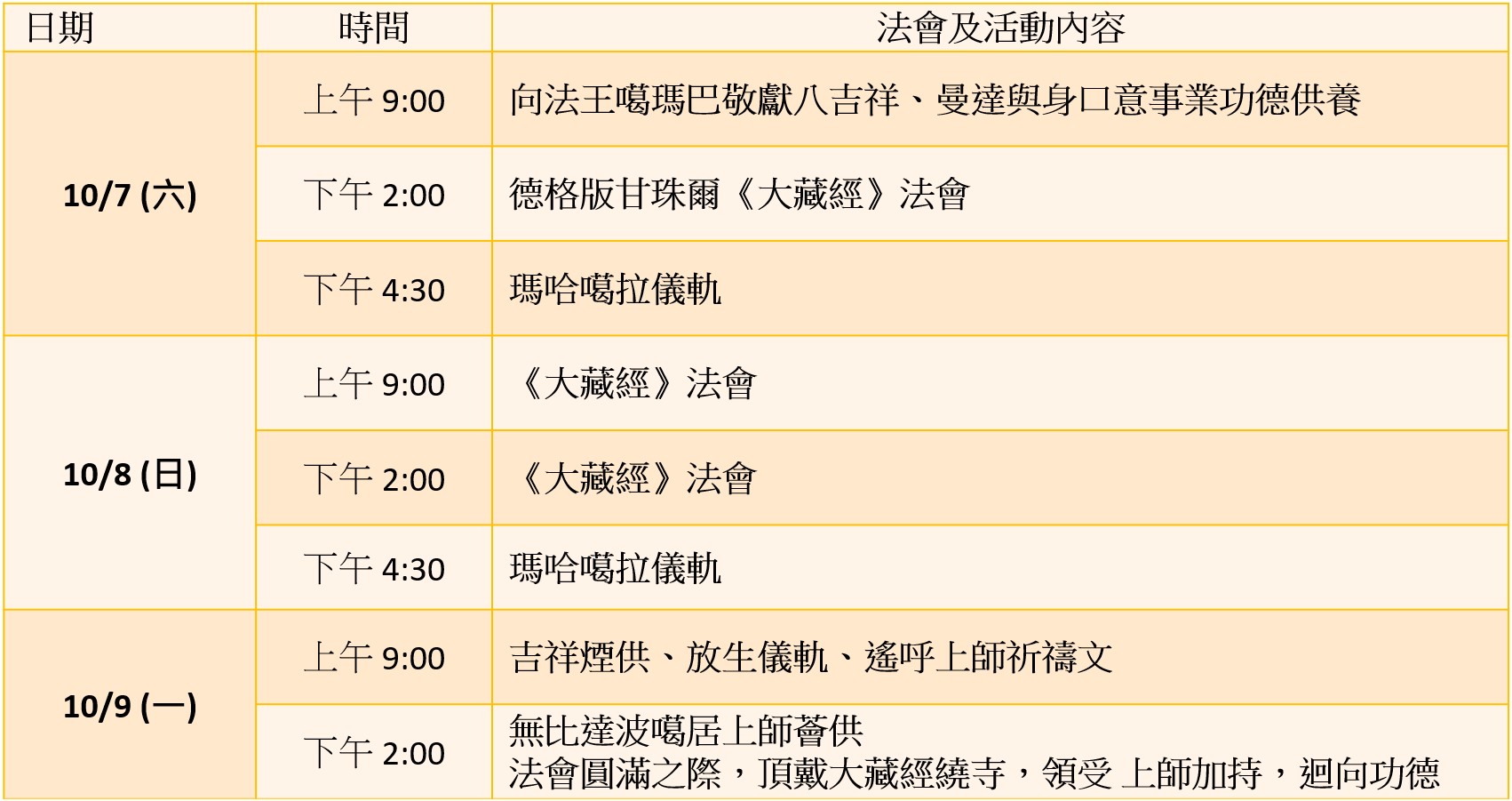 ◎法會時間表