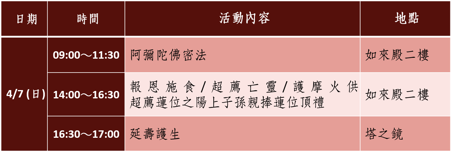- 法會時間表若有修訂,請以本寺官網最新公告為準。
