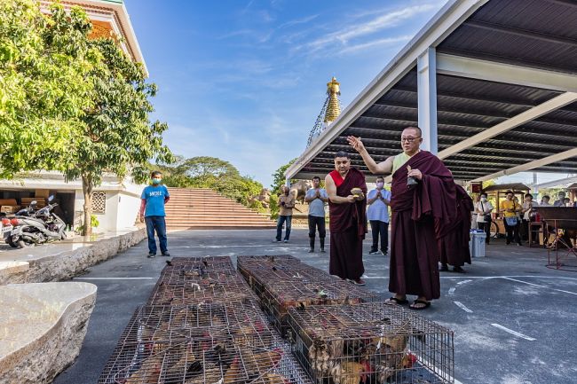 放生還可以延年益壽,對於壽命已盡、三日後定死的人來說,放十三條生命,一定能延長三年壽命。殘殺所放的生命,罪過等同殺一百個人的罪業。世尊在經中如是說。我為解救世上苦,放生待宰知時禽。大聲疾呼,放生雞隻功德迴向台灣,消除地震天災傷害。