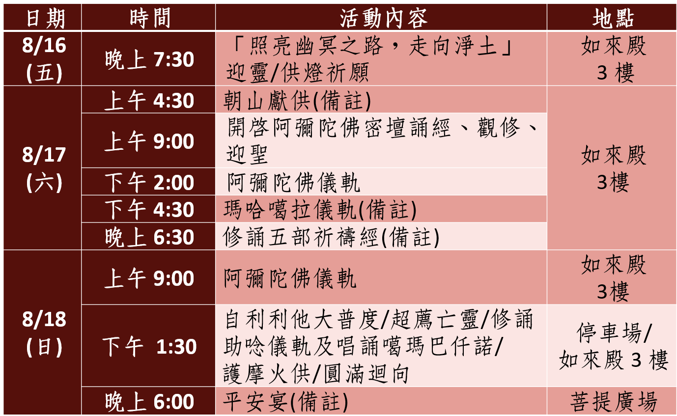 - 持誦阿彌陀佛真言,請至本寺官網下載「計數表」,8月12日前回傳,以利功德迴向。