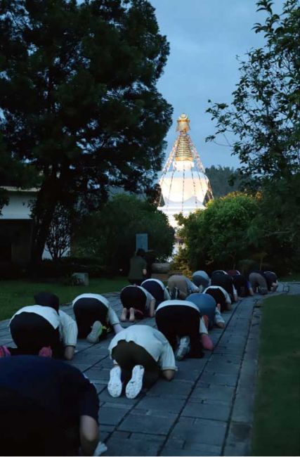上師仁波切有云:「以清淨菩提心為動機而朝山,成就佈施波羅蜜。朝山持誦真言,憶念諸佛功德,即是持戒。一路高低起伏、礫石刺骨,能耐受艱苦,即是忍辱。堅持到底,便是精進波羅蜜。心心念念不渙散,即是禪定。圓滿之際,見舍利塔、見佛寺,生起感動,遠離雜念煩惱,內心充滿無限感激,感激三寶,感激父母,感激眾生,便是智慧。」