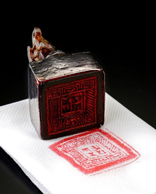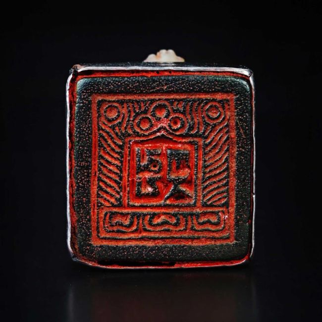 這是一位西藏來台的老喇嘛供養上師 仁波切。 告知上師噶瑪巴西曾使用此印。 印鈕是龍形,印文則是噶瑪巴。 此印未曾示人,三十多年來一直被收藏在上師的護法室內。 只有在九永日為新衣加持時,取出用印。 如果你也想要印璽蓋在宣紙上裱背留作紀念亦可。
