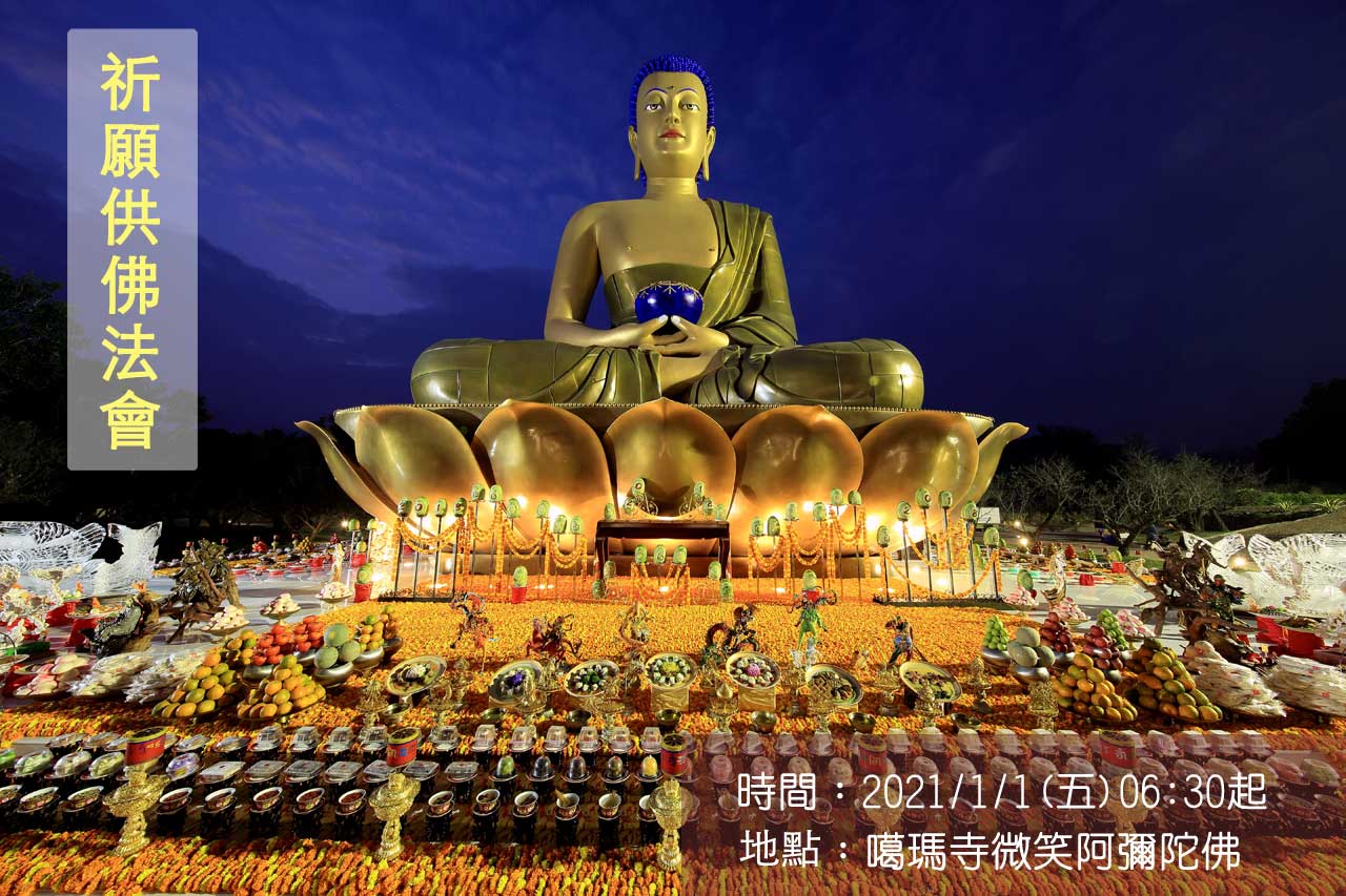 迎接21年到來,噶瑪噶居寺舉辦元旦日出祈禱法會,在微笑阿彌陀佛聖像前盛大薈供根本上師、傳承上師、佛陀、佛法、本尊、空行勇父、僧伽眾。如同往昔:以最敬虔誠準備七珍八寶吉祥神器,伽楠沉香廣大供,八功德水,鮮花馨香,美味妙饌文殊智慧餅。無上佛法儀軌、手印、觀想等成辦一切善業利他菩提行。祈禱熄滅終止疫情漫延,世界秩序快速恢復,經濟危機解除,戰爭止於此時!
