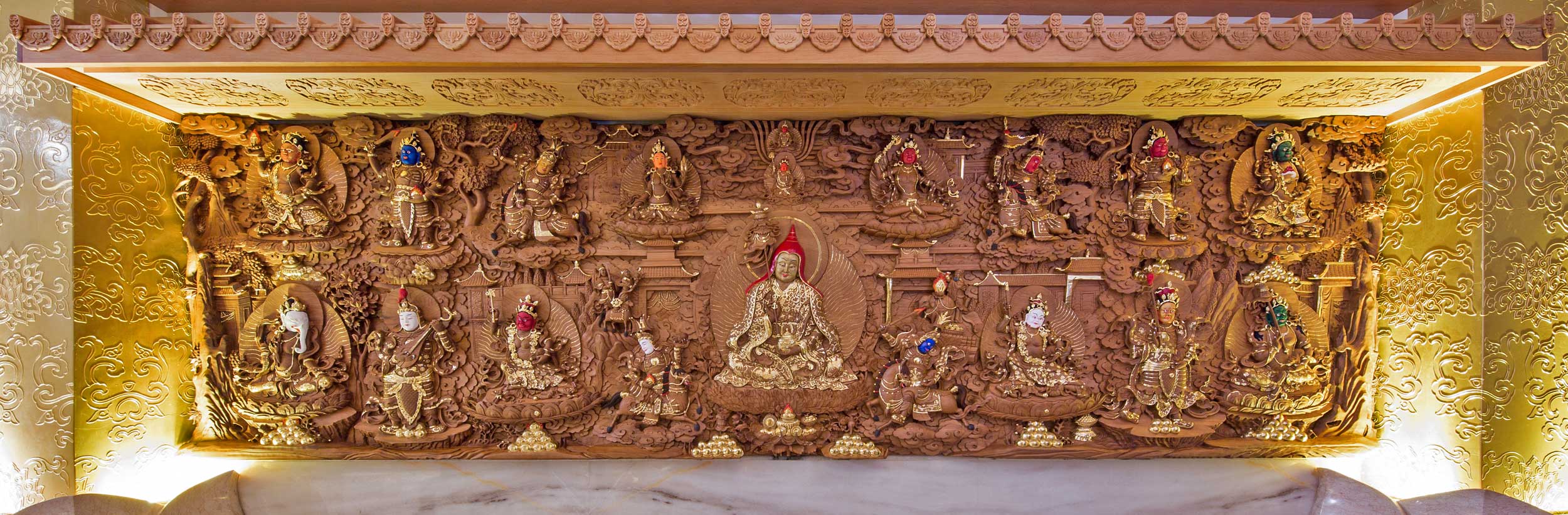 喇嘛諾拉諸尊聖眾,根據法本如上記載,上師仁波切指導藝師,以木雕唐卡呈現,安奉於如來殿大佛右側,祈願一切佛寺道場自利利他珍寶豐盈,聖財圓滿。一切眾生遠離匱乏,受用富饒,自在喜樂!