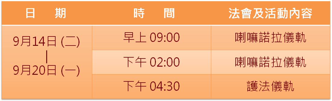 ✽法會時間表若有修訂,請依本寺官網最新公告為主。原9/21行程不對外開放。