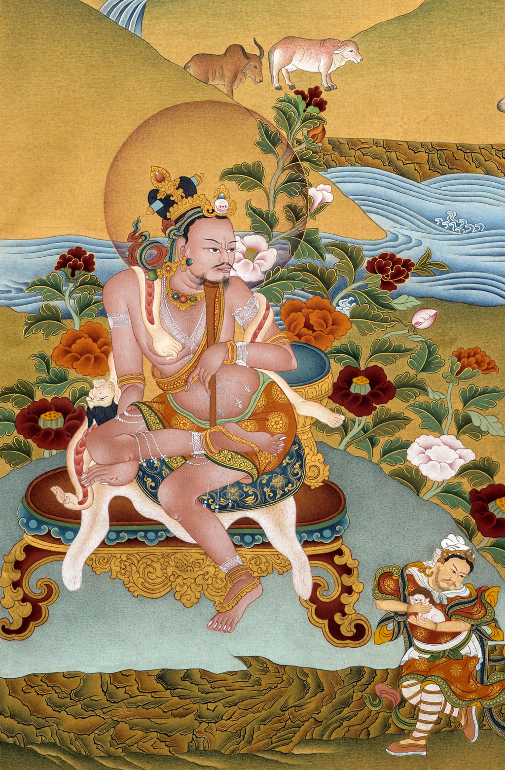 當尊貴的龍樹尊者還住在蘇瓦納的時候,有一個西印度來的婆羅門小偷,名叫納噶波狄,他從門口看到龍樹尊者正吃著裝盛在金盤裡的豪華食物,便生起偷盤子的念頭,龍樹尊者知道了他的念頭,便將金盤子從房間丟了出去。