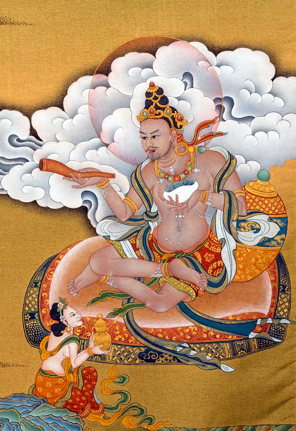 那諾巴感到極端地欣喜,好似登上了初地菩薩的果位一樣。他想著:「與上師相處的十二年之中,上師甚至連『你是誰?』都沒說過,現在他卻說『我的兒呀!』」因此,那諾巴感到非常地高興。帝諾巴尊者說:「兒呀!去多拿一點這種好吃的食物來給我。」那諾巴去了四趟,房子裡的每一個人都很樂意的將食物給他。第五次那諾巴不好意思再開口乞討,但又覺得如果沒有拿到,上師會失望,所以他又再去要一次。當他到達那房子時,看到屋內的人們非常混亂,就偷拿一個裝滿食物的盆子回去。當他向上師獻上供養時,上師更加的高興了。那諾巴獲得了加持灌頂和金剛亥母密法的教導。修持了六個月之後,他得到了成就,從此那諾巴尊者的稱號便在各地傳揚開來。十方雲集而來的人們都向那諾巴獻上供養,那諾巴的心間放出一道光芒,連遠在一個月路程之外的人們都可以看得到。利益了無數的眾生後,那諾巴尊者進入勇父的淨土。