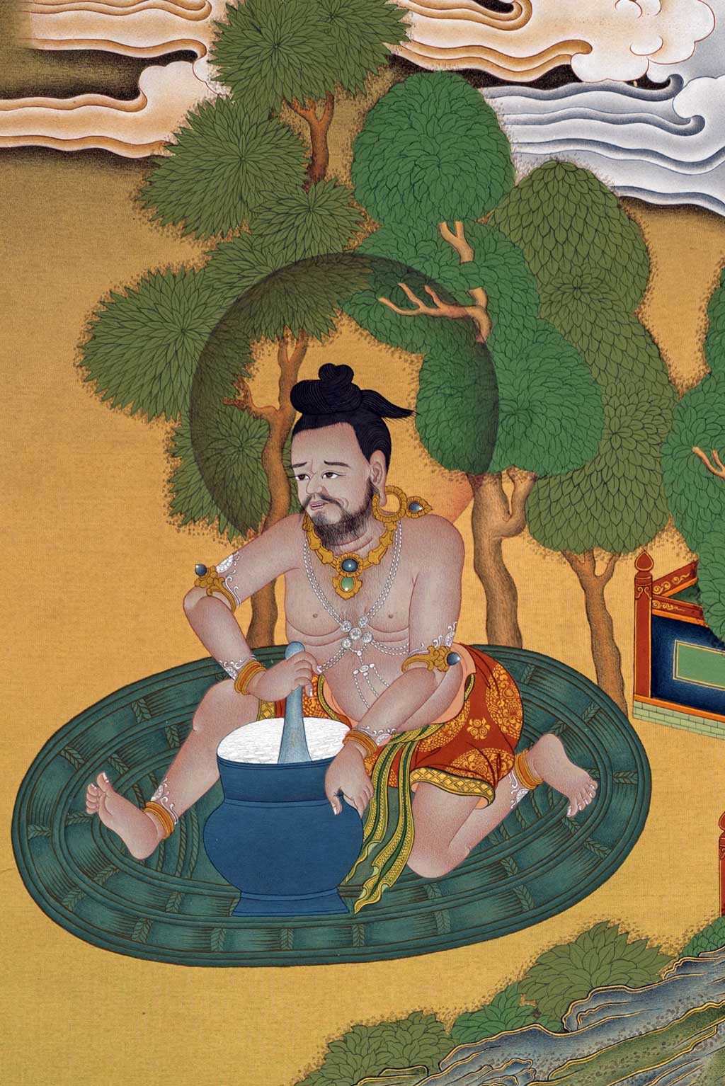 他沒有接受她的提議,反而為這位賣酒的女人與金塔鋪拉的人民宣說佛法,並指導他們修法。之後,他與七百位隨從一同前往空行淨土。