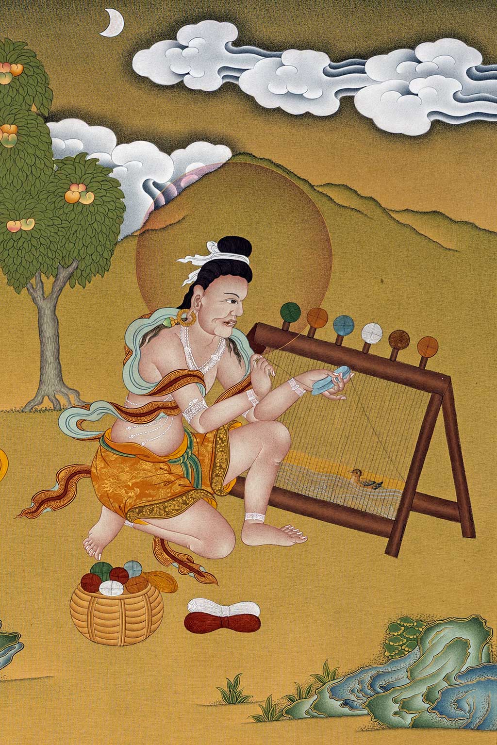 有一天,一位名叫佳蘭達拉巴的上師來到附近一帶,向老織工的長子托缽化緣。老織工的兒子們請上師到家裡接受供養。在他們的家中,舖設了一座寶座,恭敬地請上師入座,並準備了豐盛的佳餚。佳蘭達拉巴上師接受供養圓滿後,即表示要離開,但是老織工的媳婦們卻熱誠地挽留說:「請上師不要到別的地方,住在我們家裡歇息吧!」上師答:「我不可以睡在別人的家裡,那會阻礙我的修行!」媳婦們說:「那我們在花園裡另置一處,請上師一定要接受我們的誠心。」於是她們就在花園裡安排好歇息的地方,留上師住一宿。