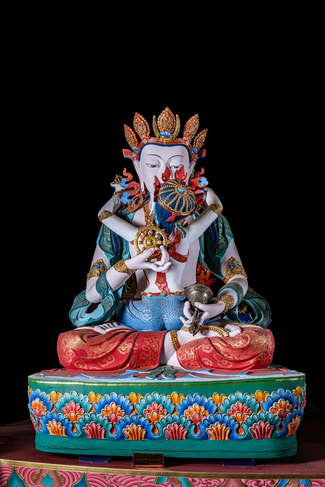 經典上說,一生只要看過一次中陰百尊聖像,臨命終後即容易解脫輪迴。這是極秘密深奧的密法法義,因此這麼久以來,寺方未曾正式公開中陰百尊壇城。訪客亦不得其門而入,洛本天津仁波切說,是時候該打開光之門,讓具足因緣者一窺生命奧秘!