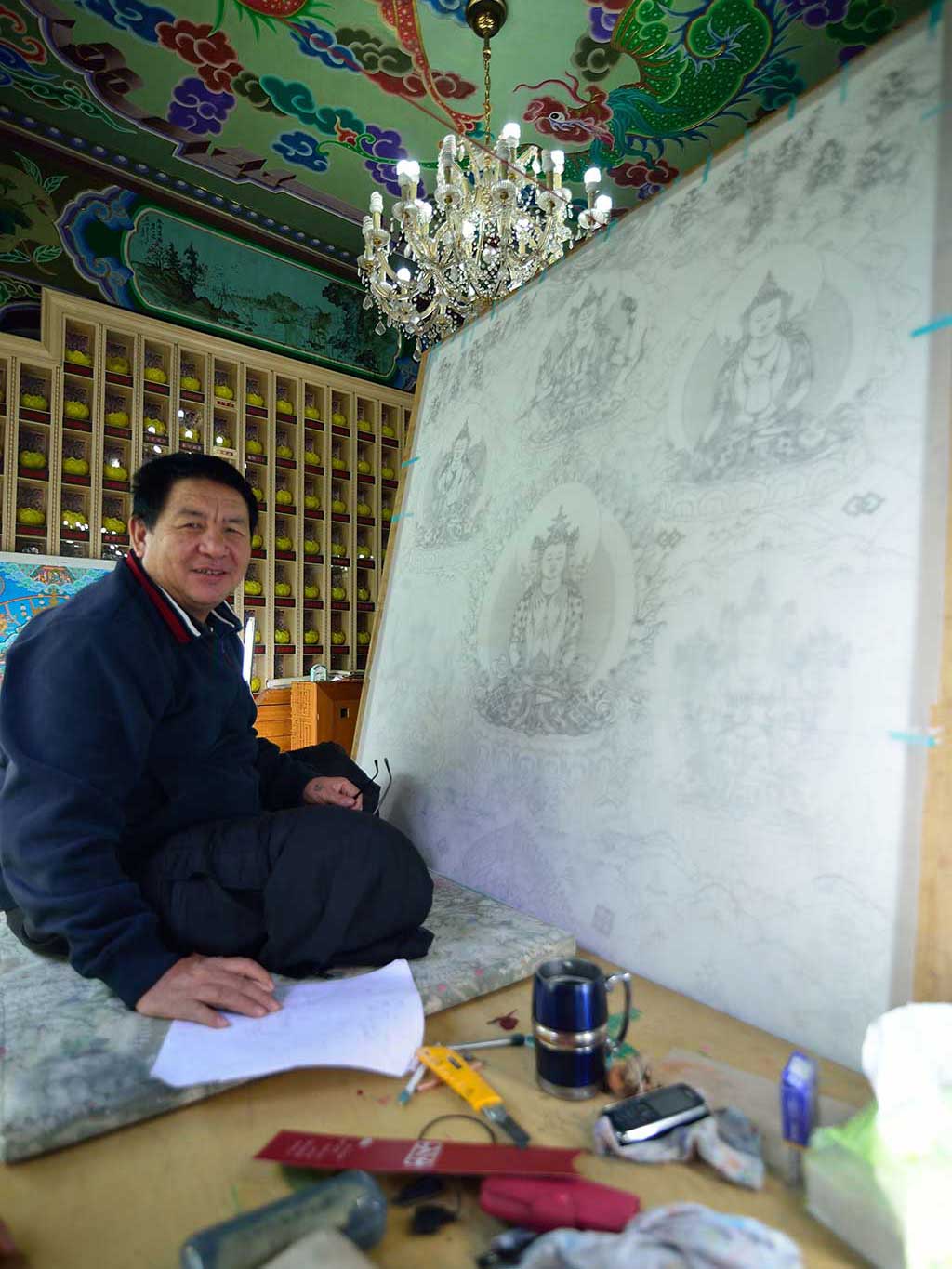 兩百五十年後的今日台灣,我生起以檜木刻畫本尊聖像為屏風的構思,恰巧看到梵華樓一書,於是引用書中顯經密續本尊與天神護法108尊聖像。先請不丹畫師繪製素描,然後再以台灣紅檜木雕琢,復以花梨木為框。每一座木刻佛屏,高280餘公分,開創木雕佛教藝術之新局──「紅檜般若密續二十六座佛屏」,增添台灣佛教史,為現代保留鑿花傳統工藝,也為華人文化增加多元色彩。