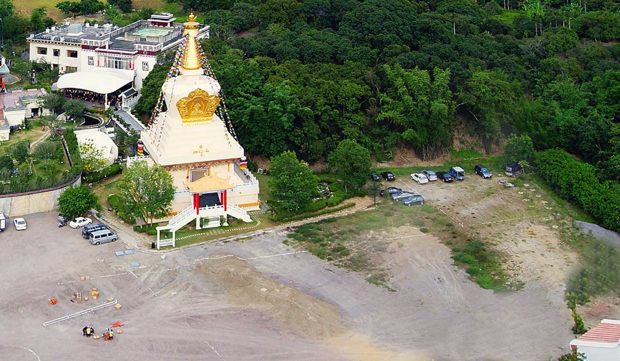 逝水年華的邊岸,仁波切帶我們回溯記憶的上游:與雪白的塔連接的,是起伏的山丘。轉個身望向北方,翠綠的竹林海浪,伴隨著一條鹹水溪蜿蜒而過。別看它小,下起雨來溪水暴漲,可會淹至門庭前的大石。