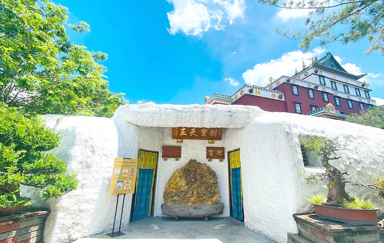 財寶天王窟(簡稱財神窟),猶似印度石窟闢建,在藍天綠樹的襯托下,雪白的外觀,更顯雅緻。